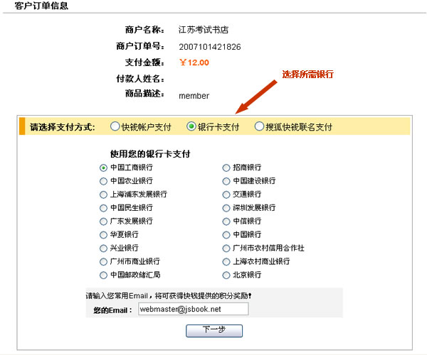 用户可以自己选择支付的银行,选择您可以支付的“银行”然后点击下一步。
