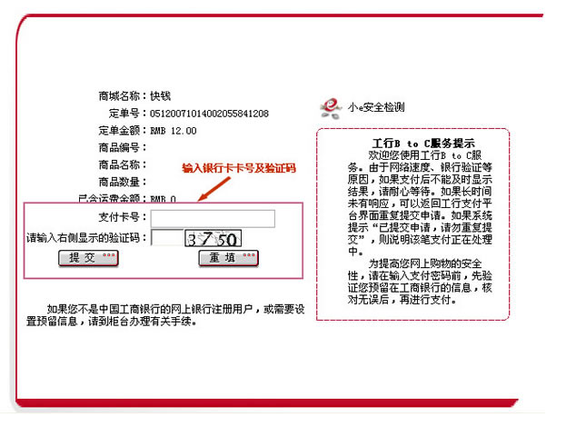 但都会有如下图所示的信息,如支付金额,定单号等。按照界面提示输入相应的卡号等信息后按确认既可。
